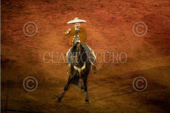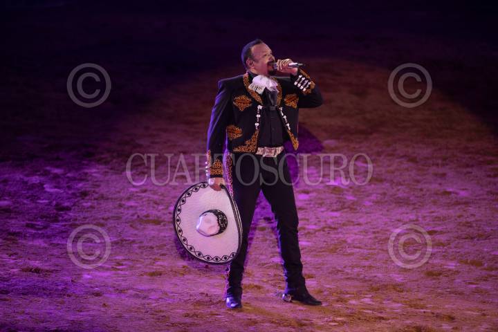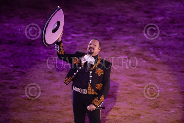 Pepe Aguilar durante su presentación en el "Jaripeo sin fronteras", en la Plaza México.