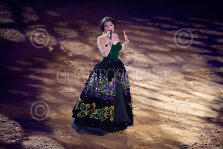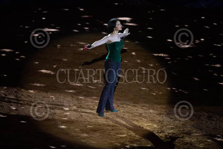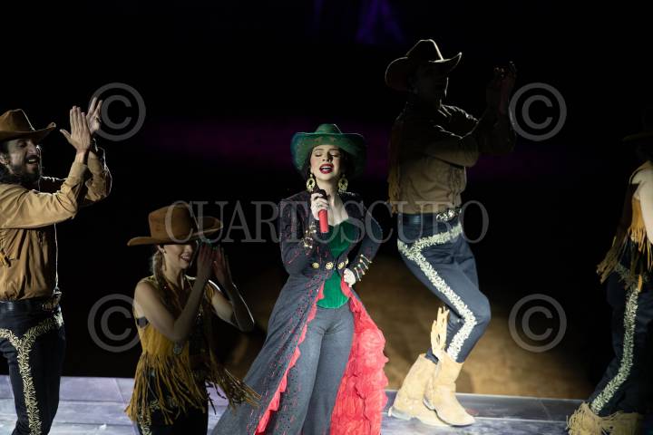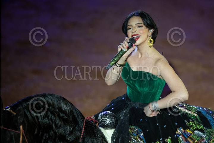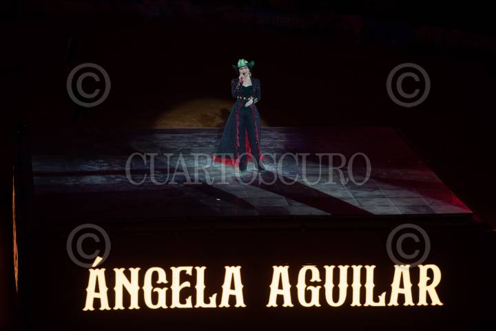 Ángela Aguilra durante su presentación en el "Jaripeo sin fronteras", en la Plaza México.