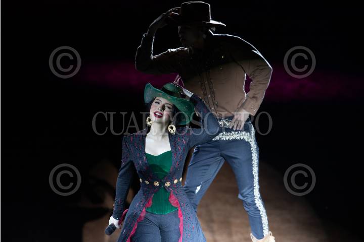 Ángela Aguilar y su hermano Leonardo Aguilar cantaron a dueto durante su presentación en el "Jaripeo sin fronteras", en la Plaza México.