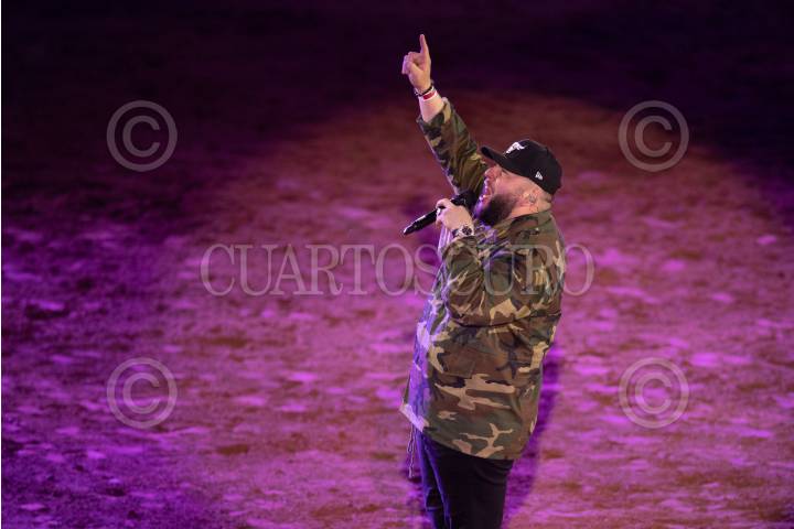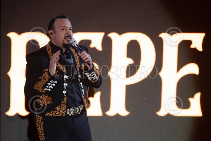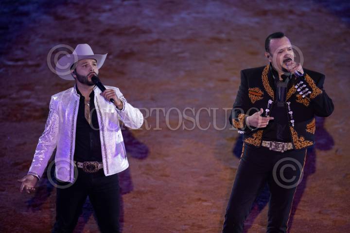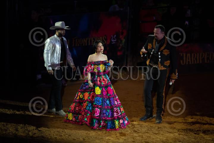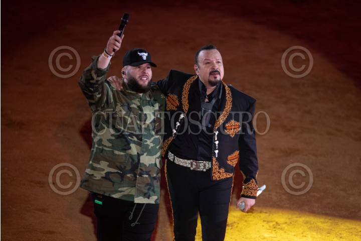 El Fantasma canto junto a Pepe Aguilar durante su presentación en el "Jaripeo sin fronteras", en la Plaza México.