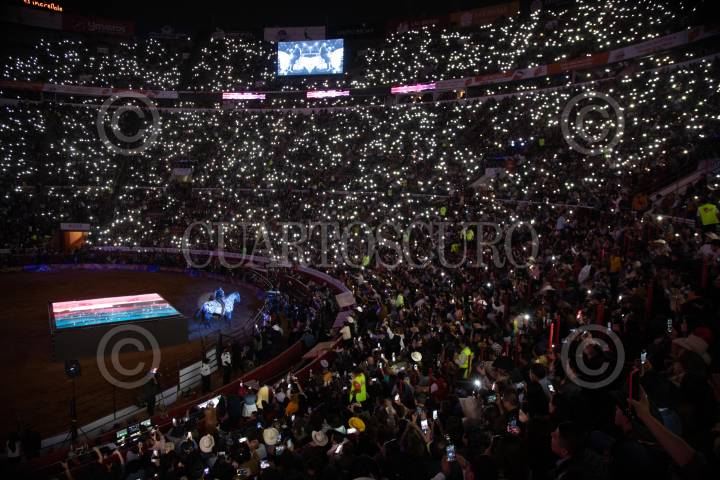 durante su presentación en el "Jaripeo sin fronteras", en la Plaza México.