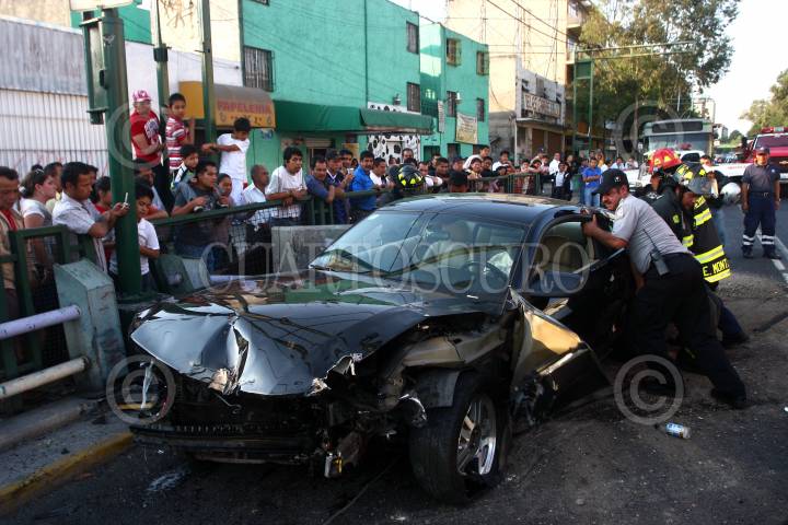 MÉXICO, D.F., 16FEBRERO2009.- Bomberos auxilian a un automóvil deportivo que se impactó en el muro de contraflujo del trolebus ubicado en la calle de Luna y Eje Central, Lazaro Cardenas. El conductor resultó lesionado y fue trasladado de gravedad a la Cruz Roja de Polanco. FOTO: SAÚL LÓPEZ/CUARTOSCURO.COM