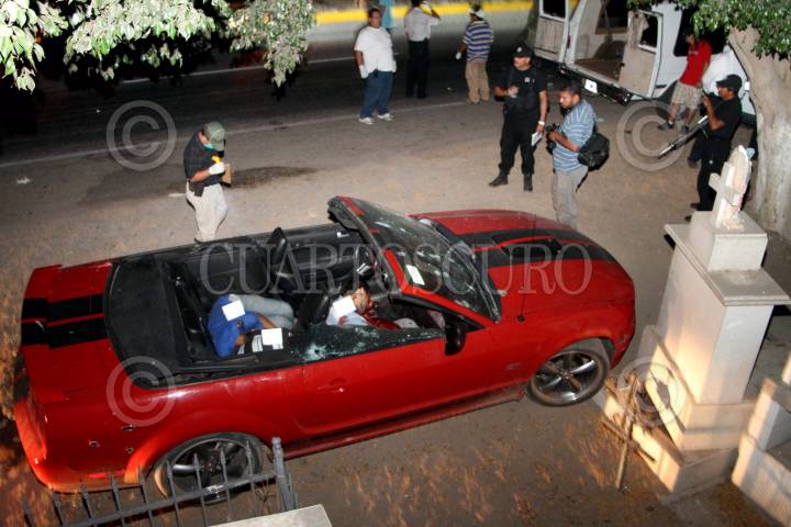 NAVOLATO, SINALOA, 23MAYO2011.- Tres personas fueron ejecutadas y 2 mas resultaron heridos al ser atacados a balazos por sujetos armados cuando viajaban en un carro tipo mustang color rojo, al perder el control chocaron contra unas tumbas del panteón Noche Buena ubicado en navolato. FOTO: RASHIDE FRIAS/CUARTOSCURO.COM