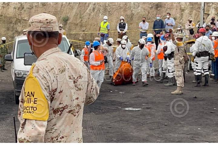 Continúan los trabajos de rescate de los siete mineros que quedaron atrapados en una mina de arrastre extractora de carbón en el Poblado de Rancherías. Elementos de la Secretaría de la Defensa Nacional y Protección Civil Federal colaboran en las labores de rescate y seguridad en la zona, en donde al momento se ha logrado rescatar el cuerpo de un minero sin vida que familiares han identificado con el nombre de Mauricio Cortés.