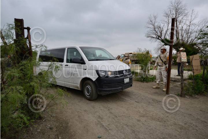Familiares y compañeros de los mineros que quedaron atrapados en la mina extractora de carbón en el Poblado de Rancherías, continúan al exterior del lugar del accidente en espera de respuestas mientras continúan las labores de rescate; además elementos de la Guardia Nacional, resguardan el área aledaña.