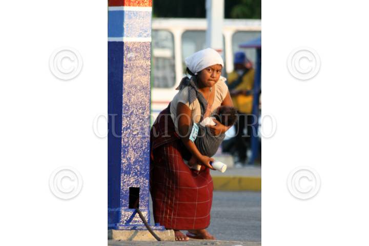 VILLAHERMOSA, TABASCO, 08ABRIL2008.- Una adolecente de aproximadamente 14 años conocida como "Chapita" provienente del estado de Chiapas, mendiga como indigente con un recién nacido en brazos pidiendo ayuda economica en los cruceros sobre el boulevard Adolfo Ruiz Cortinez y Paseo Tabasco de la colonia Tabasco Dos Mil. Es sabido que estas jovenes normalmente estan amañadas con otros vivales que les exigen el dinero acumalado del día para protegerlas en forma de extorción. FOTO: MARCO POLO GUZMÁN HERNÁNDEZ/CUARTOSCURO.COM
