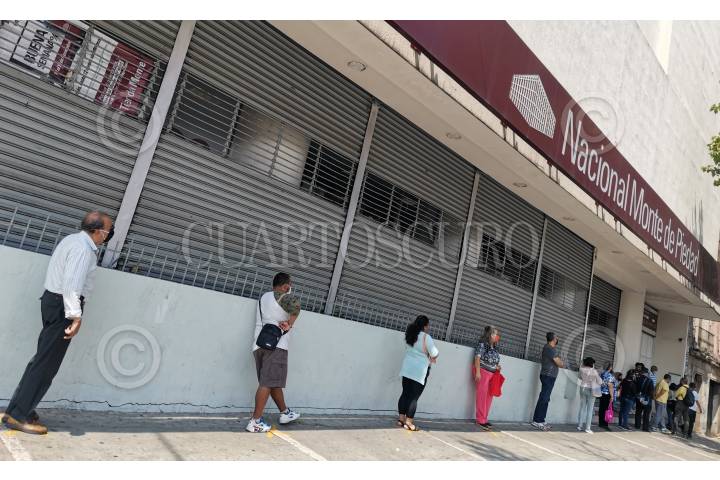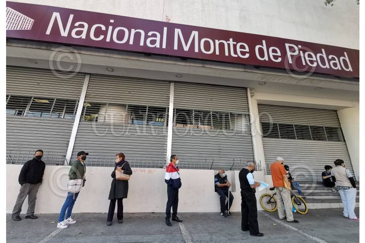 Personas esperan para poder entrar a una sucursal del Nacional Monte de Piedad.