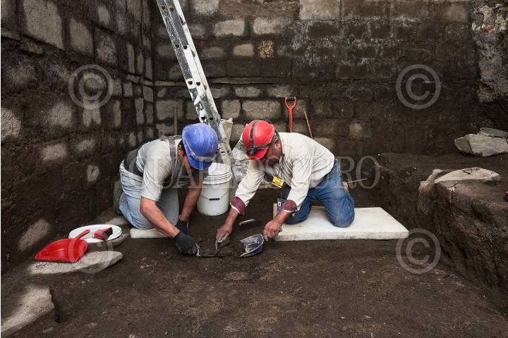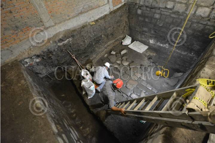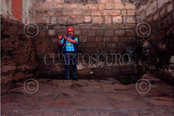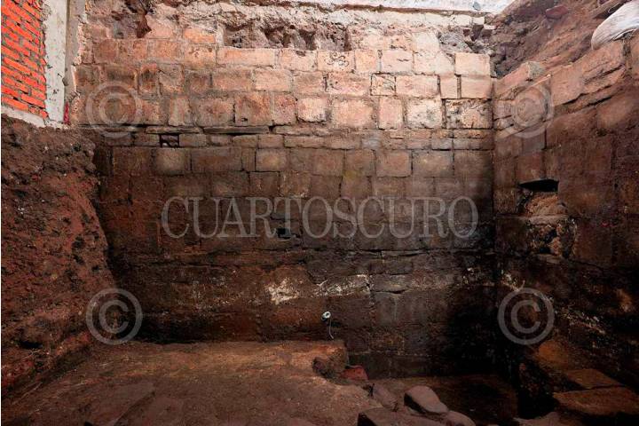 Proceso de excavación del cuarto que formó parte de la casa de Hernán Cortés, la cual fue construida con los mismos materiales del Palacio de Axayacatl. Foto: Oliver Santana/Nacional Monte de Piedad.