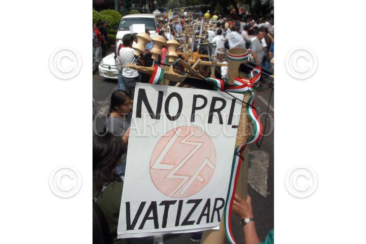 MÉXICO D.F. 27SEPTIEMBRE2006.- Integrantes del Sindicato Méxicano de Electricistas, se manifestaron a las afueras de la Secretaria de Energia, en contra de la privatización de los energeticos del país, al conmemorarse un aniversario más de la nacionalización de la industria electrica. FOTO: GUILLERMO PEREA/CUARTOSCURO.COM