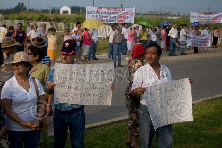 C.D. MADERO, TAMAULIPAS. 01JUNIO2010.- Un grupo de manifestantes se postro a la entrada de centro de exposiciones donde se realizo el desayuno por el 68 Aniversario del Día de la Marina y a al cual asistio el presidente de México. FOTO: GUILLERMO PEREA/CUARTOSCURO.COM