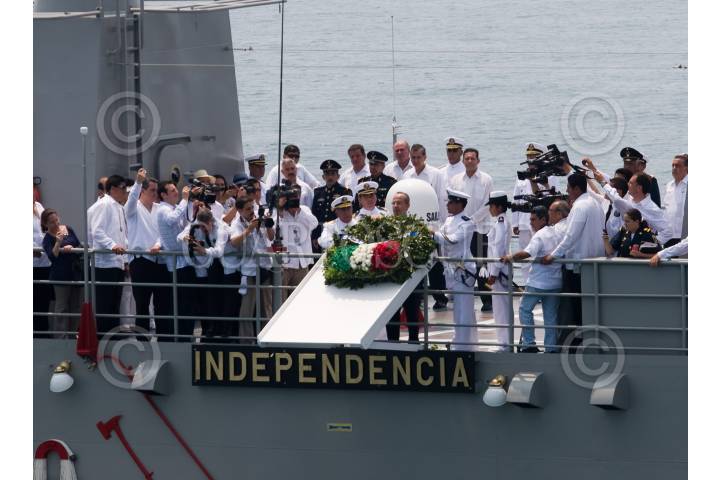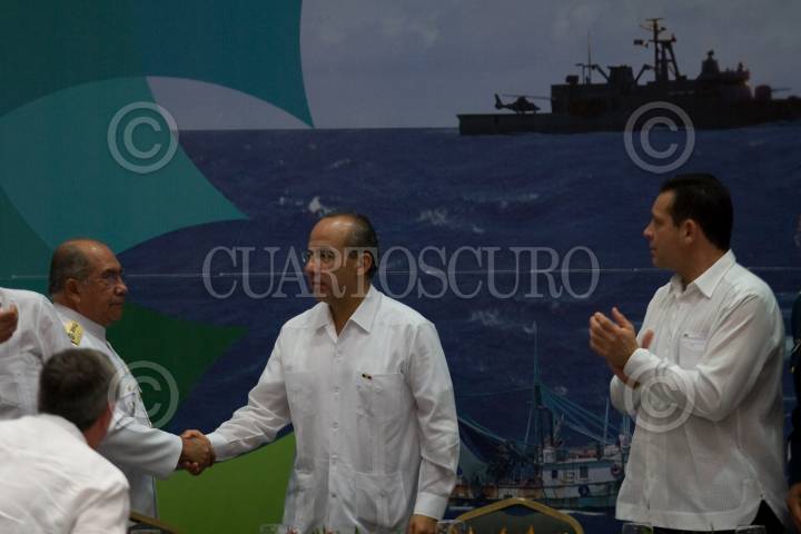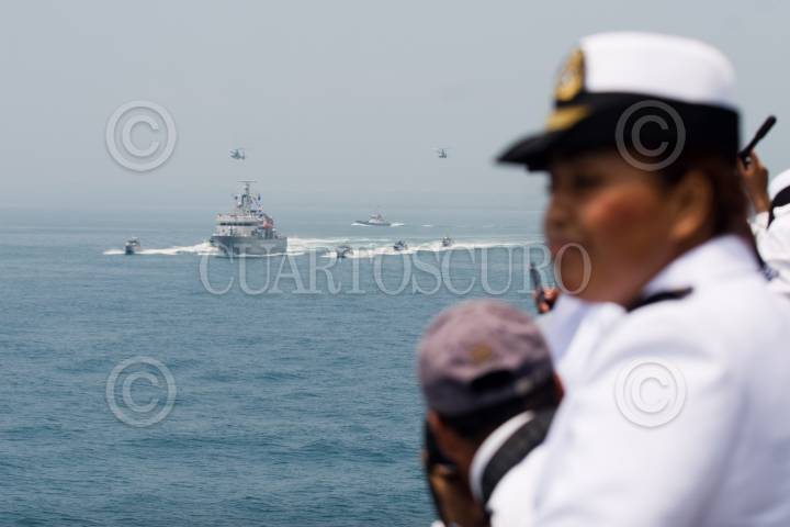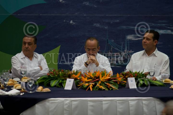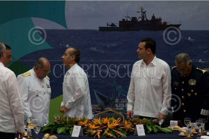 C.D. MADERO, TAMAULIPAS. 01JUNIO2010.- Felipe Calderón Hinojosa, presidente de México, acompañado de Fernando Gómez Mont, Secretario de Gobernación y Eugenio Hernández, gobernador de esta entidad, entre otros encabezo la ceremonia con la que se conmemoro el 68 Aniversario del Día de la Marina y el el XCIII Aniversario de la Nacionalización de la Marina Mexicana. FOTO: GUILLERMO PEREA/CUARTOSCURO.COM