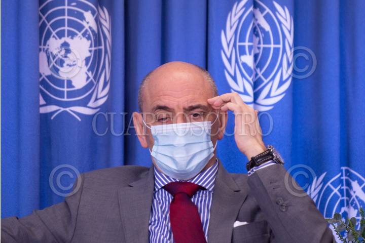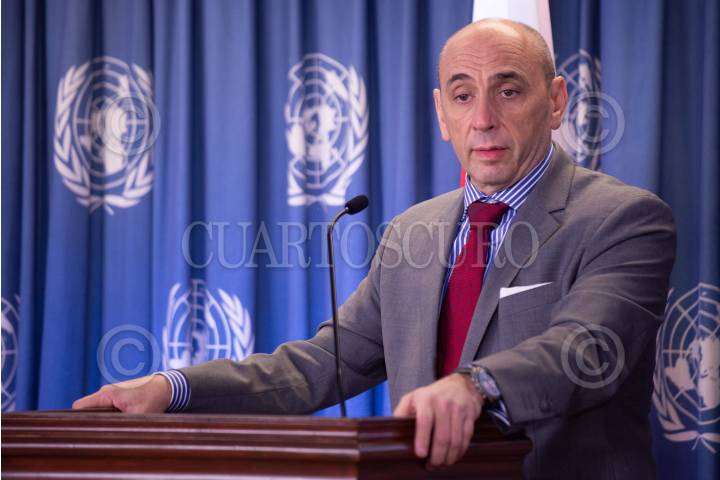 Lorenzo Jiménez de Luis, representante residente del PNUB en México, durante el anuncio del proyecto “Empresa y derechos humanos en México”, en la sala Mario Molina del Programa de las Naciones Unidas para el Desarrollo.