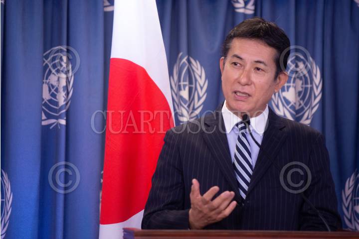 Noriteru Fukushima, embajador de Japón en México, durante el anuncio del proyecto “Empresa y derechos humanos en México”, en la sala Mario Molina del Programa de las Naciones Unidas para el Desarrollo.