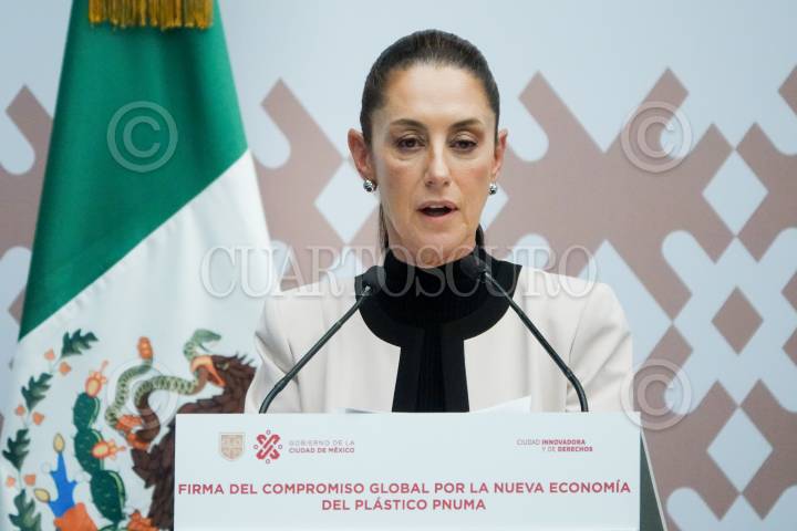 Claudia Sheinbaum encabezó el evento por la firma de firma del Compromiso Global por la Nueva Economía del Plástico del Programa de Naciones Unidas para el Medio Ambiente (PNUMA).