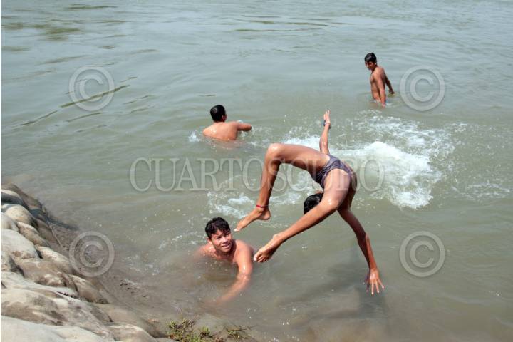 VILLAHERMOSA, TABASCO, 09MAYO2009.- Ante los incesantes más de 40 grados centígrados a la sombra en esta tarde, algunos niños y adolescentes se refrescan en zambullidas sin medir el peligro en las traicioneras aguas del río Carrizal. FOTO: MARCO POLO GUZMÁN HERNÁNDEZ/CUARTOSCURO.COM