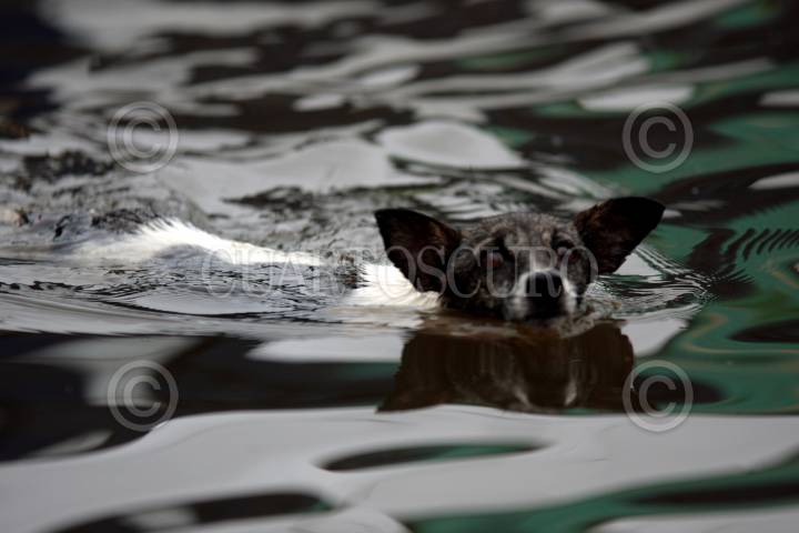 CÁRDENAS, TABASCO, 06NOVIEMBRE2009.- Un perro perdido trata ponerse a salvo al nadar sobre una zona de carretera federal inundada . FOTO: MARCO POLO GUZMÁN HERNÁNDEZ/CUARTOSCURO.COM