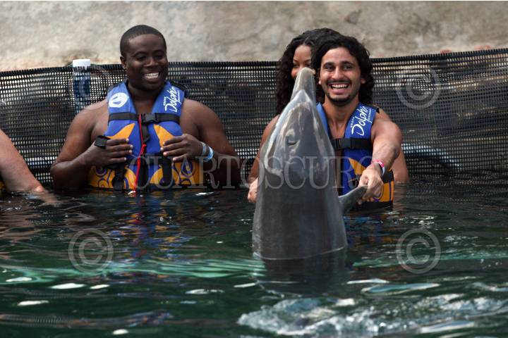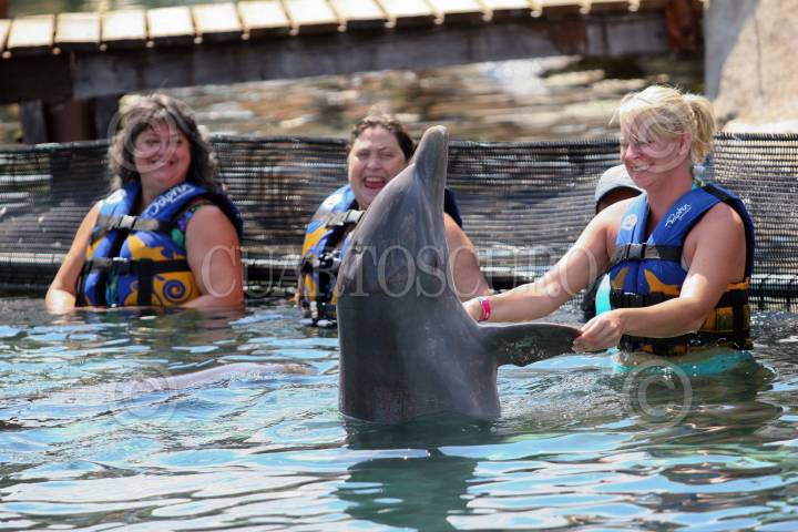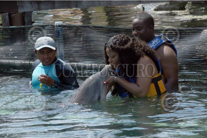 CANCÚN, QUINTANA ROO, 03OCTUBRE2010.- Turistas extranjeros disfrutan del nado con delfines en dolphin discovery en puerto aventuras en la riviera maya. FOTO: AMARANTA PRIETO/CUARTOSCURO.COM
