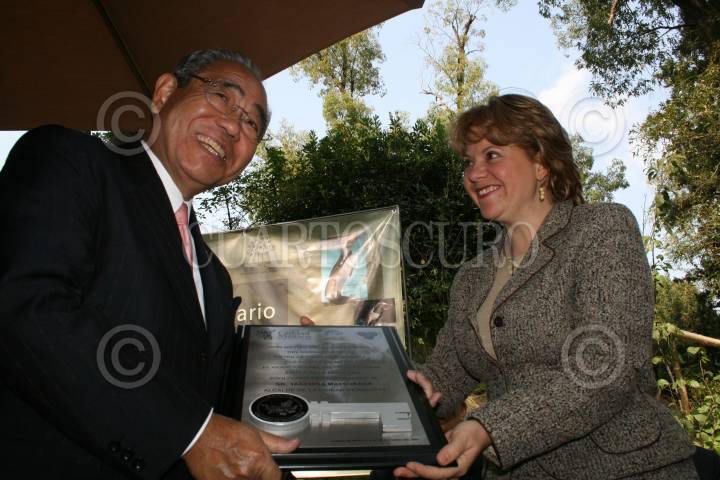 MÉXICO,D,F.,30 OCTUBRE2007.- Martha Delgado secretaria de medio ambiente del Distrito Federal, entrega las llaves de la ciudad al embajador de Nagoya Takeisa Matsabura. FOTO: SASHENKA GUTIERREZ/CUARTOSCURO.COM