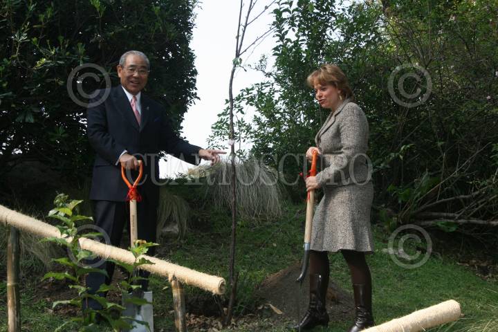 MÉXICO,D,F.,30 OCTUBRE2007.- Martha Delgado secretaria de medio ambiente del Distrito Federal, acompañada por embajador de Nagoya Takeisa Matsabura, durante la siembra de árboles de cerezo que el gobierno de Nagoya dono al bosuqe de Chapultepec. FOTO: SASHENKA GUTIERREZ/CUARTOSCURO.COM
