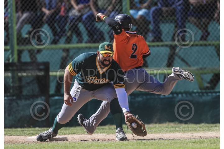 HERMOSILLO, SONORA, 09OCTUBRE2016.- Jorge Flores de Naranjeros es puesto out en primera base, durante el último partido de la pretemporada de la Liga Mexicana del Pacifico (LMP) y la Mexican BaseBall Fiesta con el encuentro de Naranjeros vs Cañeros, en el Estadio Padre Kino, en Magdalena de Kino Sonora FOTO: LUIS GUTIÉRREZ /NORTEPHOTO.COM/CUARTOCURO.COM