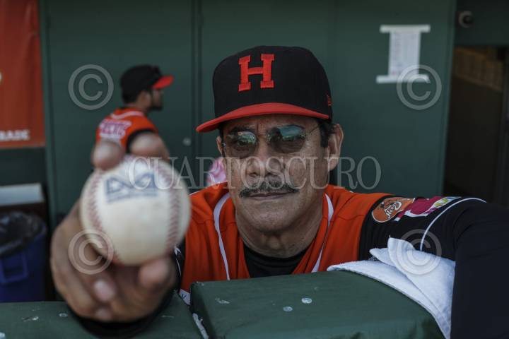 HERMOSILLO, SONORA, 21NOVIEMBRE2016.- Maximino Leon Coach de Pitcher con una pelota de la liga 1er. encuentro de la serie de béisbol entre Tomateros vs Naranjeros. Segunda Vuelta de la Temporada 2016 2017 de la Liga FOTO: LUIS GUTIÉRREZ /NORTEPHOTO/CUARTOSCURO.COM