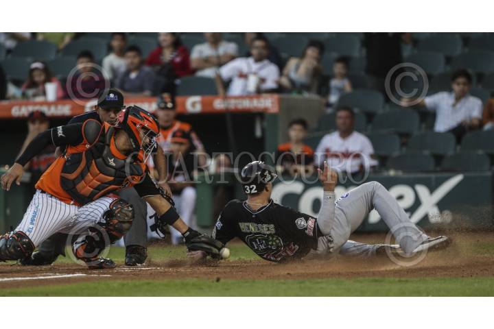 HERMOSILLO, SONORA, 21NOVIEMBRE2016.- Joey Meneses de Tomatros llega safe a home en donde intento ponerlo out el catcher Arturo Rodríguez , durante 1er. encuentro de la serie de béisbol entre Tomateros vs Naranjeros. Segunda Vuelta de la Temporada 2016 2017 de la Liga Mexicana del Pacifico. FOTO: LUIS GUTIÉRREZ /NORTEPHOTO/CUARTOSCURO.COM