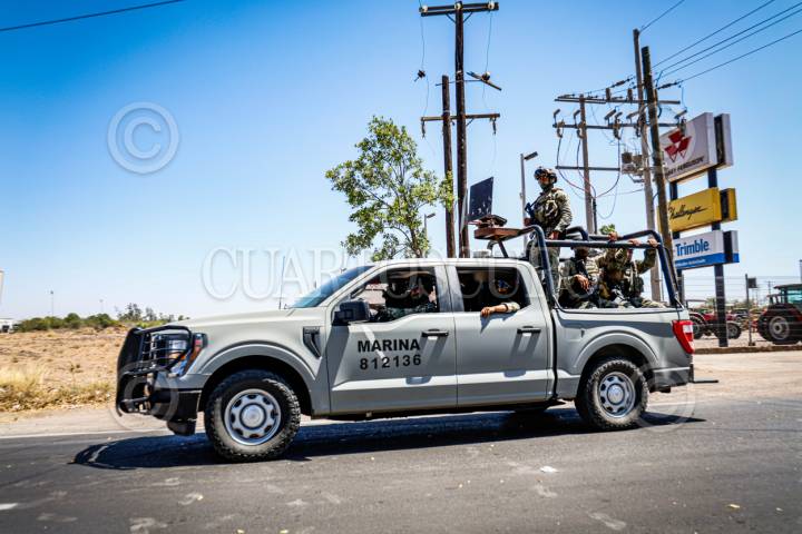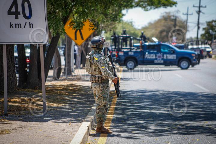 VILLA ÁNGEL FLORES “LA PALMA”, NAVOLATO, SINALOA, 19MAYO2025.- El enfrentamiento de esta tarde en Villa Ángel Flores “La Palma”, Navolato, dejó un saldo de tres civiles fallecidos, cuatro militares heridos y granadas aseguradas, además de dos vehículos con impactos de bala. Tras cuatro horas de operativos terrestres y aéreos, las fuerzas federales lograron controlar la situación, que sembró miedo entre los pobladores al registrarse en pleno Centro de la sindicatura. La primera escena documentada ocurrió en el Campo El 17, donde un vehículo blindado “SandCat” volcó, dejando a cuatro elementos del Ejército Mexicano lesionados, quienes fueron rescatados por un helicóptero militar en plena carretera. Poco después, elementos de Fuerzas Especiales resguardaron varias calles en la colonia Fidel Velázquez, donde se presume que cayeron los agresores. Hasta el momento, las autoridades han localizado dos granadas sin percutir y tres cuerpos sin identificar, mientras la Fiscalía y el Semefo continúan con las diligencias correspondientes para su identificación. FOTO: JOSÉ BETANZOS ZÁRATE/CUARTOSCURO.COM