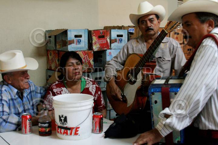 ZACATECAS, ZACATECAS, 11MARZO2011.- La noche de ayer se realizó en el Núcleo Issstezac de Cultura del estado, la exposición pictórica sobre el corrido zacatecano, obra realizada por destacados artistas zacatecanos, Emilio Carrasco, Jesús Reyes Cordero, Susana Salinas, Alfonso Lopez Monreal, entre otros. La inauguración estuvo acompañada de la presentación del Trío Rey que musicalizo el evento con corridos tradicionales zacatecanos. FOTO: ADOLFO VALTIERRA/CUARTOSCURO.COM