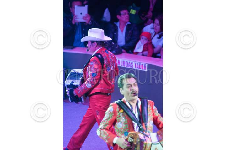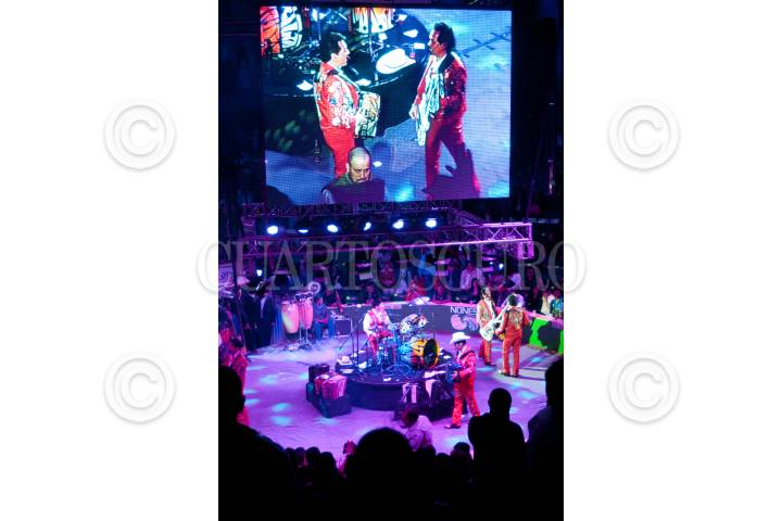 TEXCOCO, ESTADO DE MÉXICO, 24MARZO2012.- El grupo musical norteño Los Tigres del Norte, tocando al ritmo del bajo eléctrico, el acordeón, el bajosexto y la batería, amenizaron la inauguración de la XXXI Edición de la Feria del Caballo Texcoco 2012, evento que se realiza anualemente al cual asisten diversos grupos musicales, se organizan peleas de gallos, exhibiciones ecuestres, corridas de toros y exposiciones artesanales. FOTO: DIEGO SIMÓN SÁNCHEZ /CUARTOSCURO.COM