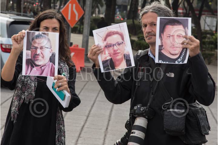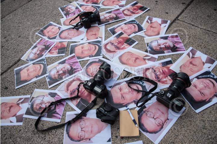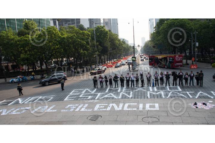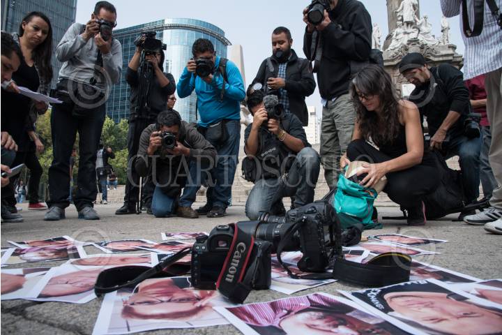 CIUDAD DE MÉXICO, 16MAYO2017.- Periodistas de diversos medios de comunicación, realizaron una protesta en el Ángel de la Independencia, para exigir justicia por el asesinato del periodista Javier Valdez, director de Río Doce en Culiacán, Sinaloa. FOTO: TERCERO DÍAZ /CUARTOSCURO.COM