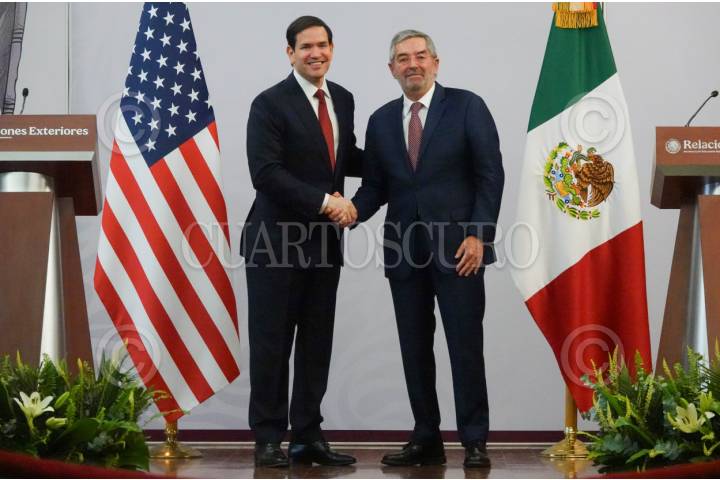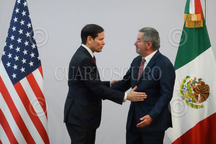 CIUDAD DE MÉXICO, 03SEPTIEMBRE2025.- Juan Ramón de la Fuente, secretario de Relaciones Exteriores, y Marco Rubio, secretario de Estado de los Estados Unidos, ofrecieron conferencia de prensa con motivo de la visita diplomática para tratar temas de seguridad entre ambas naciones. FOTO: GALO CAÑAS/CUARTOSCURO.COM