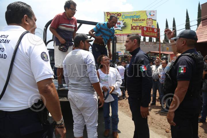 MORELIA, MICHOACÁN, 08AGOSTO2018.- Alrededor de 400 personas se manifestaron exigiendo la liberación de un presunto líder delincuencial conocido como "El Inge" bloqueando por un par de horas la salida al municipio de Pátzcuaro. La detención de Ulises Sánchez Garibay, quien fue presidente de los productores de melón del municipio de La Huacana y en el año 2013, formó parte de los grupos de autodefensas, se dio luego de que civiles armados dispararan en contra de un convoy de la Policía Michoacán, mientras circulaban sobre la avenida Lázaro Cárdenas, esquina con la calle Diego Hernández Topete en la ciudad de Nueva Italia. FOTO; JUAN JOSÉ ESTRADA SERAFÍN/ CUARTOSCURO.COM