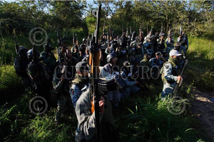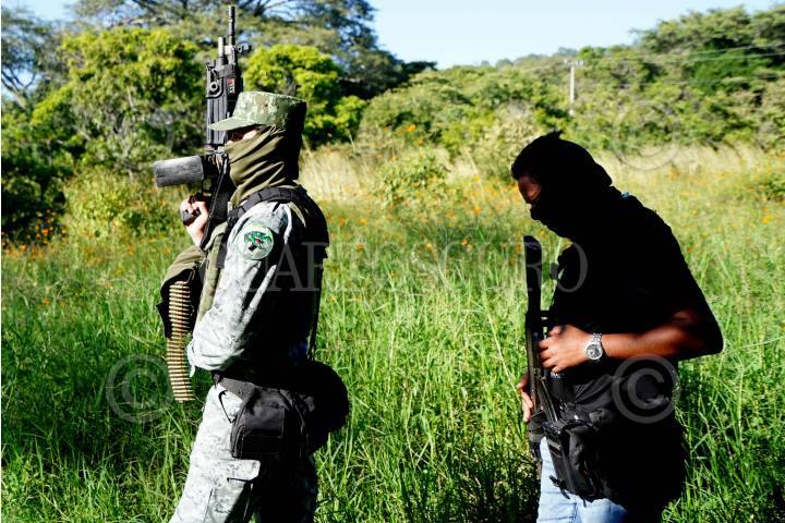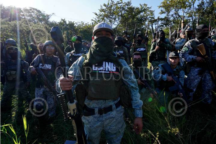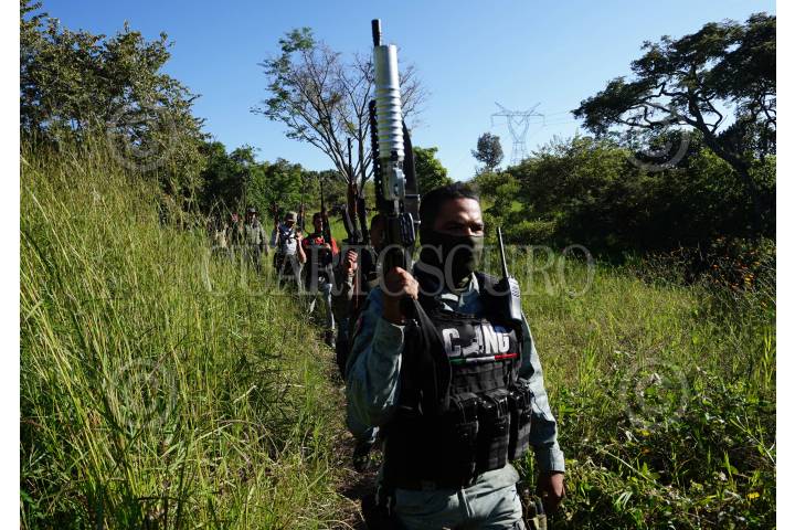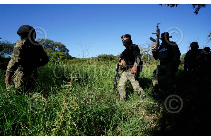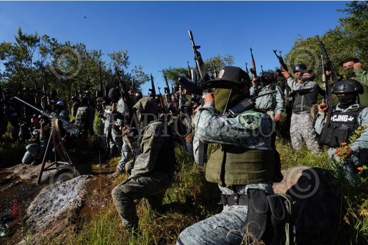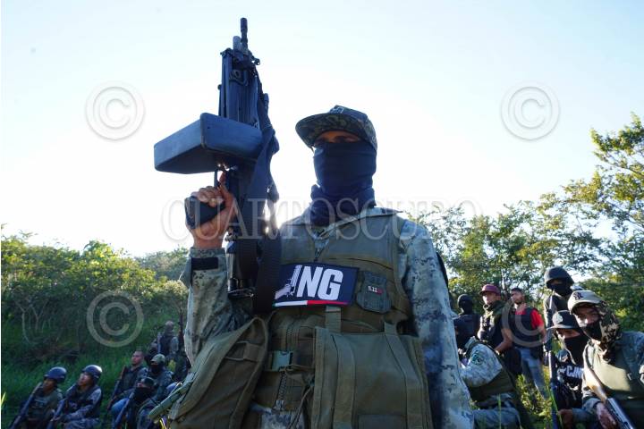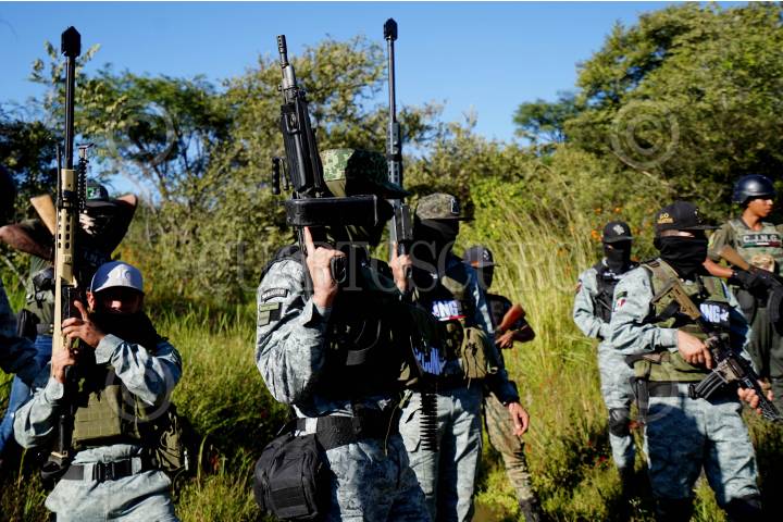 MORELIA, MICHOACÁN. 12NOVIEMBRE2023. Entre las sierras Michoacana patrullan con armamento exclusivo del ejército mexicano integrantes de la Grupo Operativo Lagarto, brazo armado del Cártel Jalisco Nueva Generación (CJNG), que actualmente sostiene una guerra contra Los Viagras, Migueladas, Cártel de Tepalcatepec y los Caballeros Templarios. FOTO: ESPECIAL/CUARTOSCURO.COM