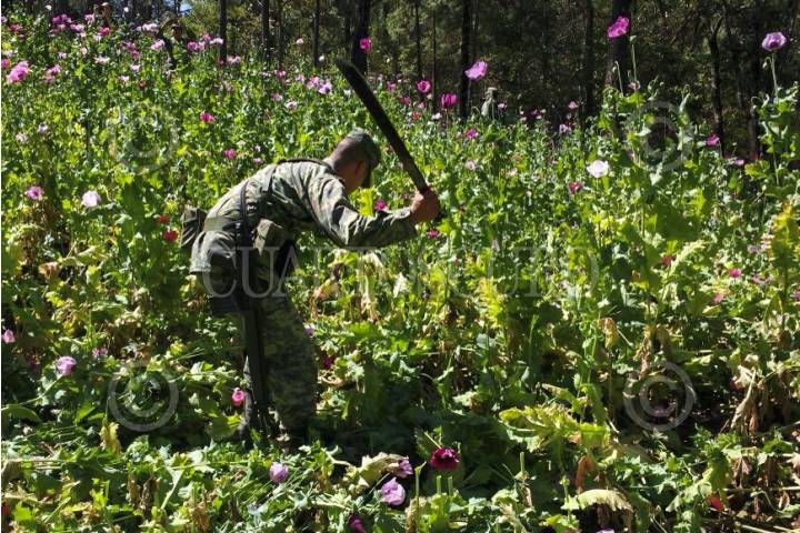 BADIRAGUATO, SINALOA, 18MARZO2017.-Durante un operativo en la sierra Sinaloense, elementos del ejército mexicano realizaron la destrucción de varios plantíos de marihuana y amapola. FOTO: CORTESIA /CUARTOSCURO.COM