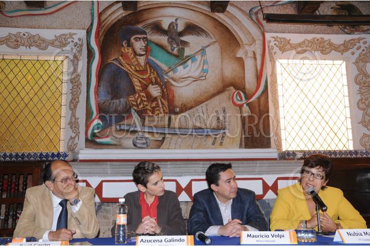 MÉXICO, D.F., 15ABRIL2010.- Raúl Cerón, FundaciónTelmex, Azucena Galindo, A Leer/IBBY México, Mauricio Volpi, Nosha Ediciones y Nubia Macías, Feria Internacional del Libro de Guadalajara, ofrecieron una conferencia de prensa para hablar sobre el Segundo Concurso Internacional de Libro-Álbum Ilustrado y Narrativa para Niños y Jóvenes en el Centro Cultura Casa Reyes Heroles. FOTO: MOISÉS PABLO/CUARTOSCURO.COM