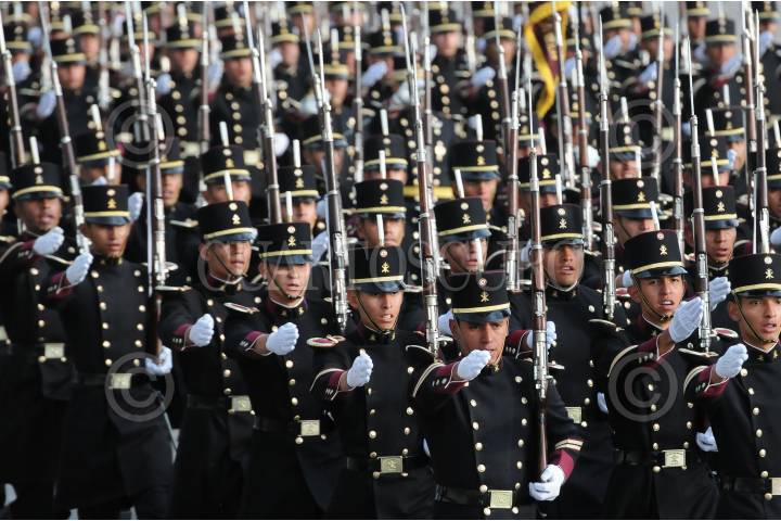 CIUDAD DE MÉXICO, 13JUNIO2024.- Elementos del Colegio Militar marchan durante la ceremonia del 156 aniversario del natalicio de Felipe Ángeles. FOTO: DANIEL AUGUSTO/ CUARTOSCURO.COM