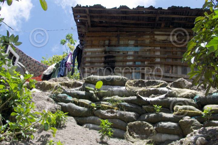 CHILPANCINGO, GRO. 05JULIO2005.- Una de tantas casas construidas en la barranca Las Calaveras, son protegidas con costales por los propios habitantes, para evitar cualquier contigencia que pudiera presentarse durante la temporada de lluvias. FOTO: Oscar Alvarado/CUARTOSCURO.COM