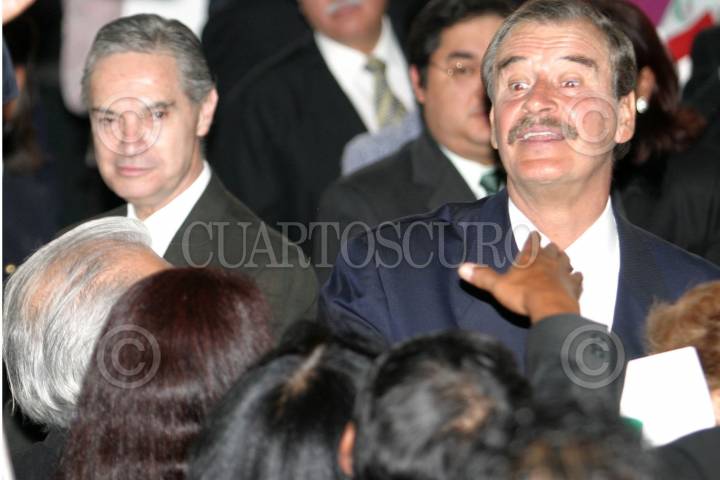 MEXICO, D.F. 28FEBRERO2005.- El presidente Vicente Fox y el canciller Luis Ernesto Derbez, a su llegada a salón Juárez donde entregaron cartas de naturalización. FOTO: Nelly Salas/CUARTOSCURO.COM