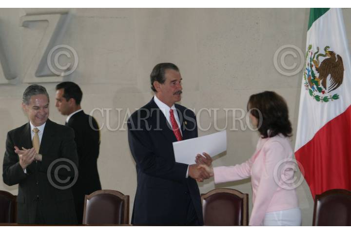 MEXICO, D.F. 28FEBRERO2005.- El presidente Vicente Fox entregó cartas de naturalización, en la sede de la secretaria de Relaciones Exteriores. FOTO: Nelly Salas/CUARTOSCURO.COM