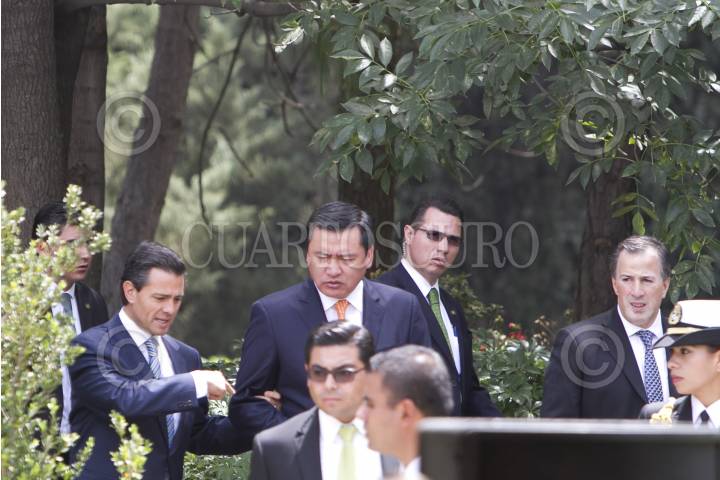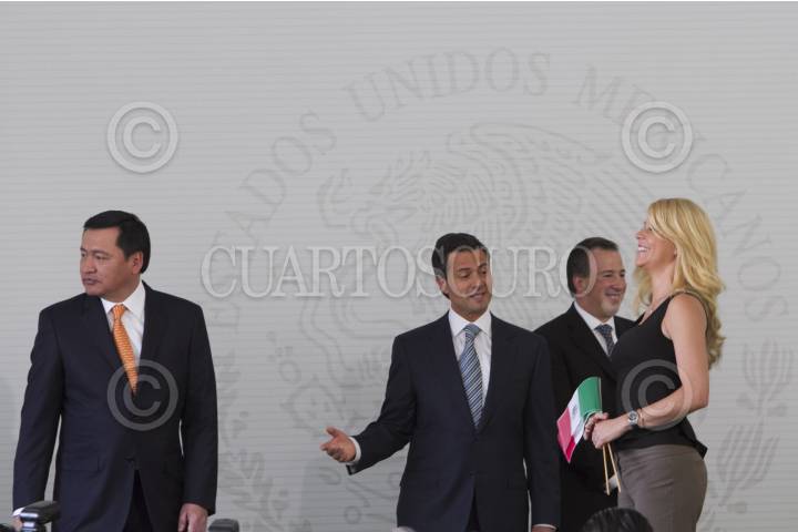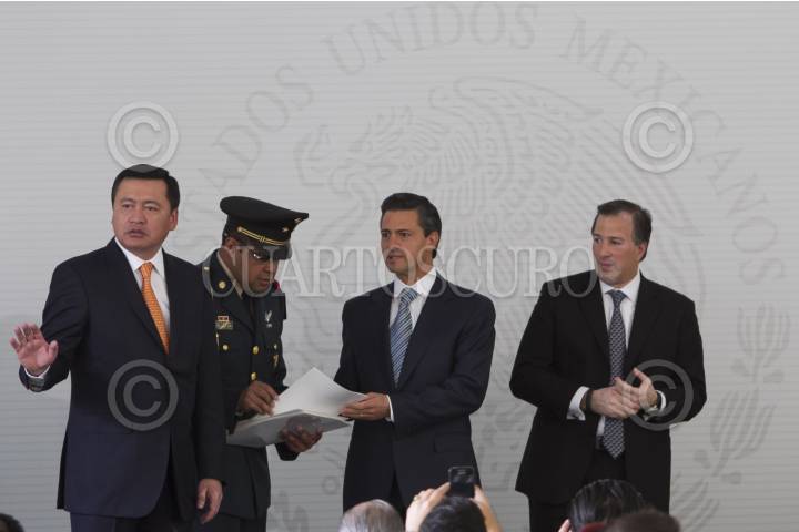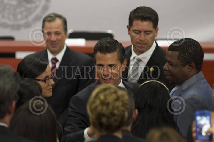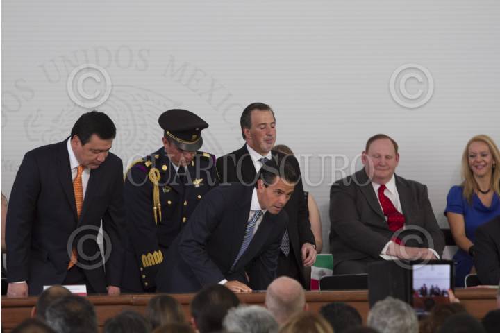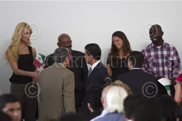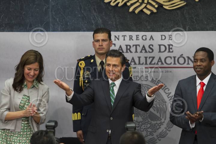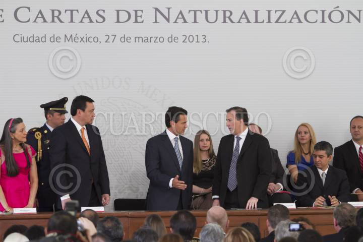 MÉXICO, D.F., 27MARZO2013.- Enrique Peña Nieto, Presidente de México, encabezo la ceremonia de entrega de Cartas de Naturalización a extranjeros, en la residencia oficial de los Pinos. Durante la Ceremonia fue acompañado de Miguel Ángel Osorio Shong, secretario de Gobernación y de José Antonio Meade Kuribreñas, titula de la secretaria de Relaciones Exteriores. FOTO: GUILLERMO PEREA /CUARTOSCURO.COM