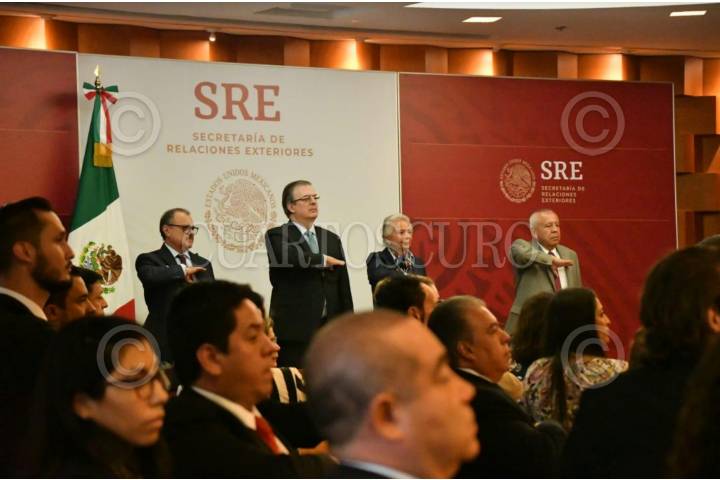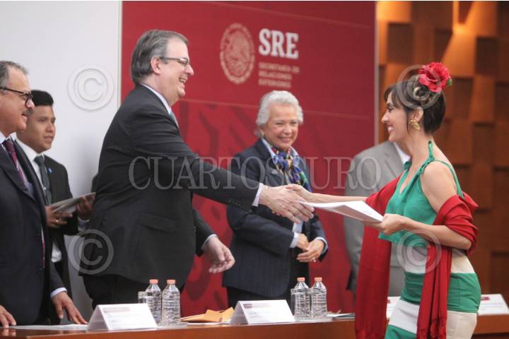 CIUDAD DE MÉXICO, 15OCTUBRE2019.- Marcelo Ebrard, secretario de Relaciones Exteriores, y Olga Sánchez Cordero, secretaria de Gobernación; Francisco Garduño Yáñez, comisionado del Instituto Nacional de Migración, y José Antonio Domínguez Carballo, titular de la Unidad de Finanzas de la Secretaría de Relaciones Exteriores, encabezaron la entrega de 100 cartas de naturalización a personas de distintos países que lo solicitaron voluntariamente y que cumplieron con los requisitos establecidos por las leyes mexicanas. La ceremonia se realizó en la Secretaria de Relaciones Exteriores (SRE). FOTO: CUARTOSCURO.COM