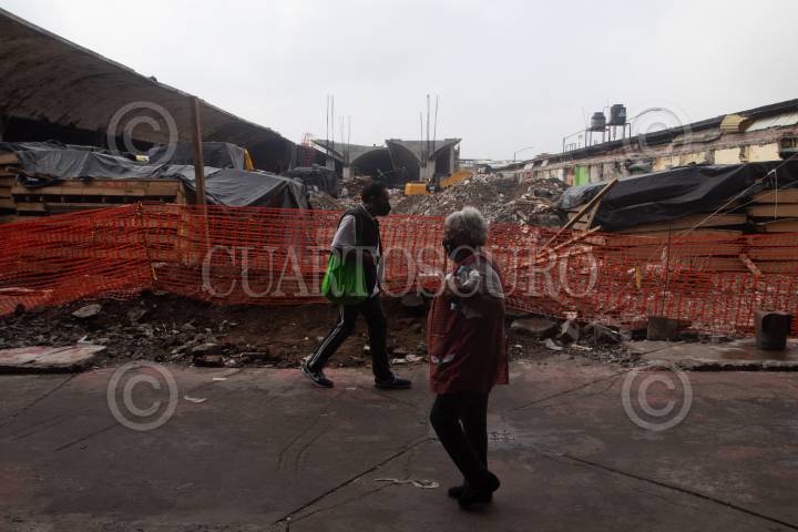 Se encuentran los trabajos de reconstrucción de la puerta 17 a la 20 de la Nave Mayor del Mercado La Merced, debido a los rezagos que sufrieron los locales por el incendio del 24 de diciembre del 2019