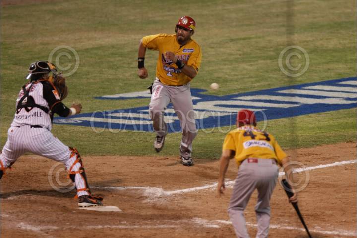MAZATLÁN, SINALOA, 14NOVIEMBRE2009.- Matt Young, de los Mayos de Navojoa se barre ante la mirada de Heber Gómez, de los Venados de Mazatlán, durante el primer partido de la serie con una blanqueada de los locales de 6 carreras a 0, ayer por la noche. FOTO: PATRICIA MEJÍA/EL DEBATE DE MAZATLÁN/CUARTOSCURO.COM