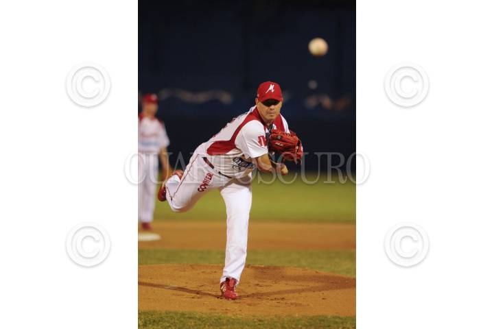 MAZATLÁN, SINALOA, 14NOVIEMBRE2009.- Javier Martínez, lanzador abridor de los Mayos de Navojoa, durante el partido de inicio de serie con los Venados de Mazatlán, los locales vencieron con una blanqueada de 6 carreras a 0, esto ayer por la noche. FOTO: PATRICIA MEJÍA/EL DEBATE DE MAZATLÁN/CUARTOSCURO.COM