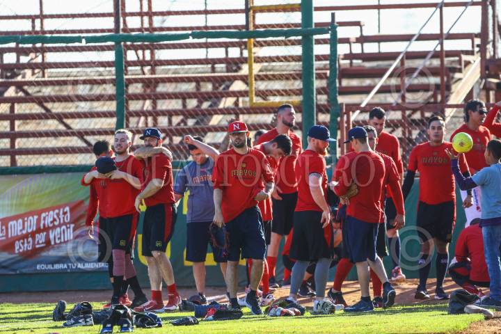 NAVOJOA, SONORA, 27ENERO2018.- El equipo de Pitcheo de los Mayos de Navojoa entrenaron esta tarde en el campo del estadio Manuel ¨Ciclón¨ Echeverría, previo al partido de beisbol número 6 de la serie final entre Mayos de Navojoa vs Tomateros de Culiacán de la Temporada 2018 de la Liga Mexicana del Pacifico. FOTO: LUIS GUTIERREZ /CUARTOSCURO.COM