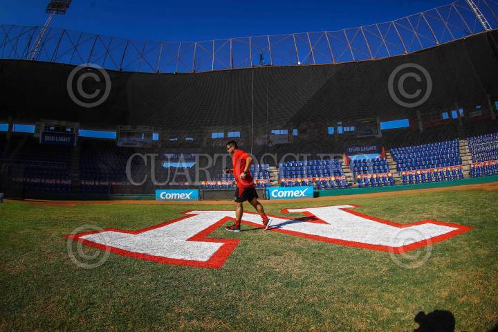 NAVOJOA, SONORA, 27ENERO2018.- El equipo de Pitcheo de los Mayos de Navojoa entrenaron está tarde en el en el campo del estadio Manuel ¨Ciclón¨ Echeverria, previo al partido de beisbol número 6 de la serie final entre Mayos de Navojoa vs Tomateros de Culiacán de la Temporada 2018 de la Liga Mexicana del Pacifico. FOTO: LUIS GUTIERREZ /CUARTOSCURO.COM