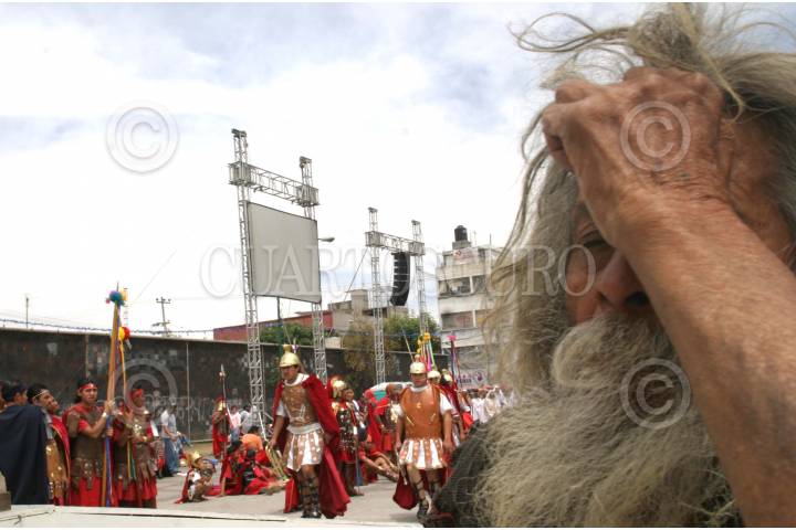 MEXICO D.F 25 MARZO 2005.- Cientos de personas inundaron las calles en este viernes en la conmemoración de la Pasión de Cristo en Iztapalapa, en el cerro de la estrella en centro de la demarcación. FOTO: Eunice Adorno/CUARTOSCURO.COM