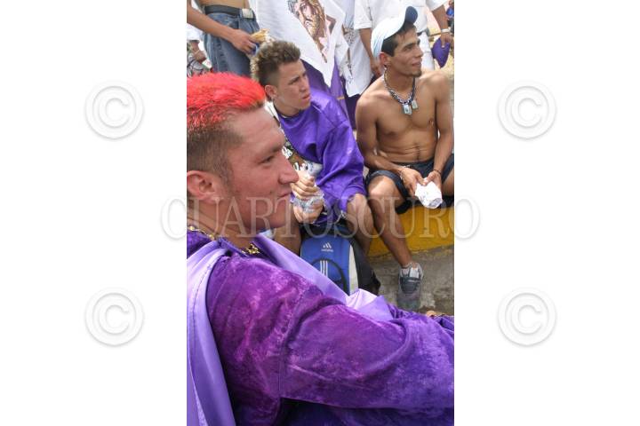 MEXICO D.F 25 MARZO 2005.- Nazarenos descansan por las calles en este viernes en la conmemoración de la Pasión de Cristo en Iztapalapa, en la explanada del Jardín Cuitláhuac, en el centro de la demarcación. FOTO: Eunice Adorno/CUARTOSCURO.COM