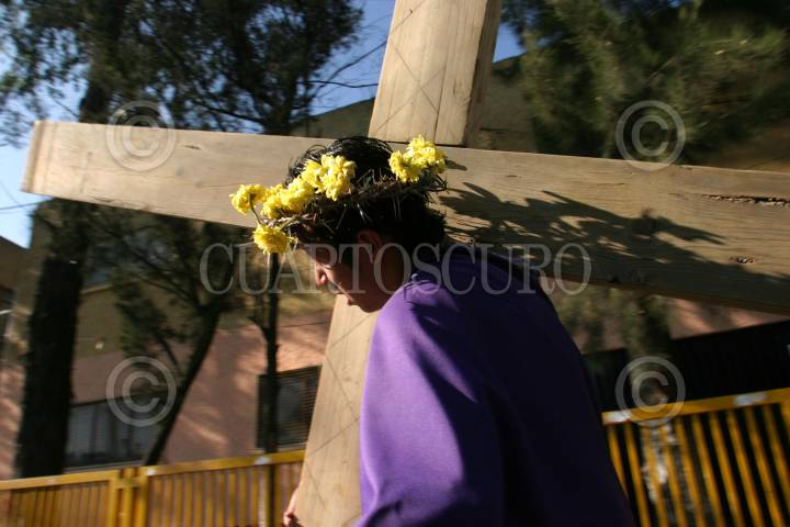 MÉXICO, D.F., 06ABRIL2007.- El joven José Manuel Guillen, quien representó a cristo en la pasión de Iztapalapa, fue crucificado en punto de las cuatro de la tarde en el Cerro de la Estrella, en la edición CLXIV de la representación. FOTO: MOISÉS PABLO/CUARTOSCURO.COM