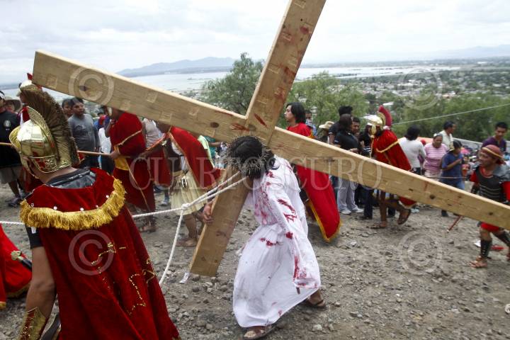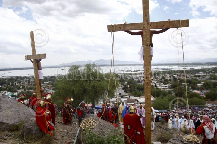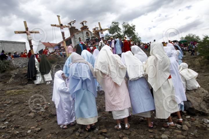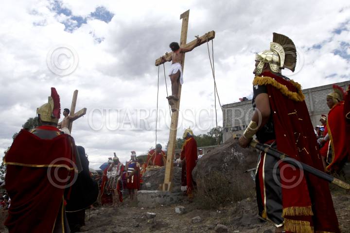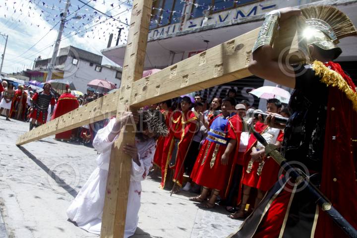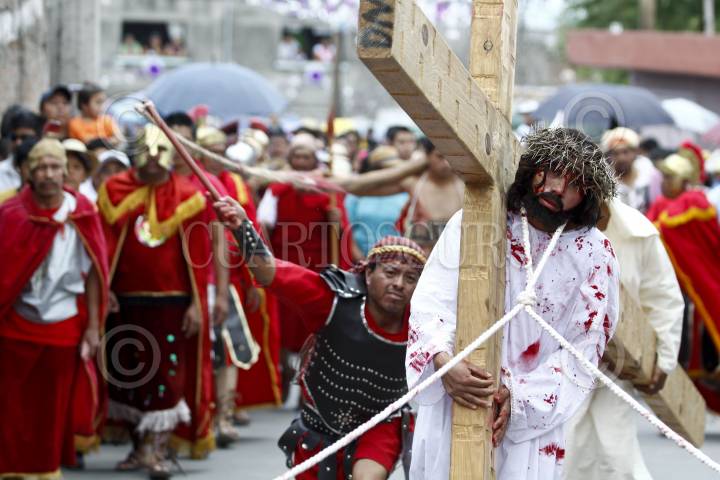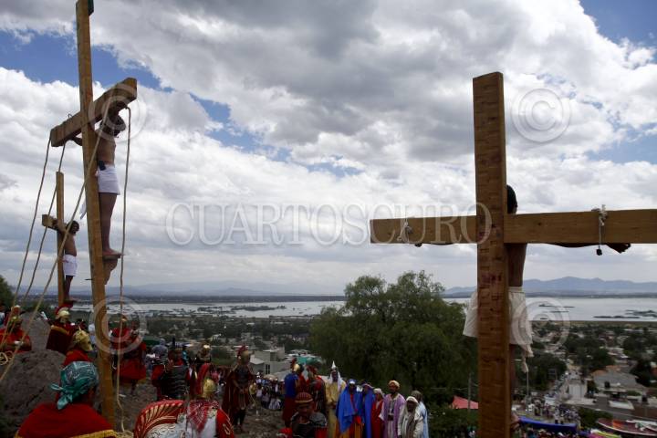 SAN JUAN ZITLALTEPEC, ESTADO DE MÉXICO, 06ABRIL2012.- En un pueblo a un costado de la laguna de Zumpango se celebró el Viacrucis de la Pasión de Cristo; Jesús de Nazaret, Rey de los Judios fue juzgado y crucificado de acuerdo a la tradición de la religión católica en este Viernes Santo ante cientos de personas que acudieron a la representación. FOTO: RODOLFO ANGULO /CUARTOSCURO.COM